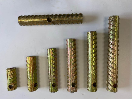 采用螺纹钢钢筋经过内螺纹加工而成,在端部设置贯穿接合钢筋用的销孔,以防止脱落,同时可使载重均匀地分布在混凝土内