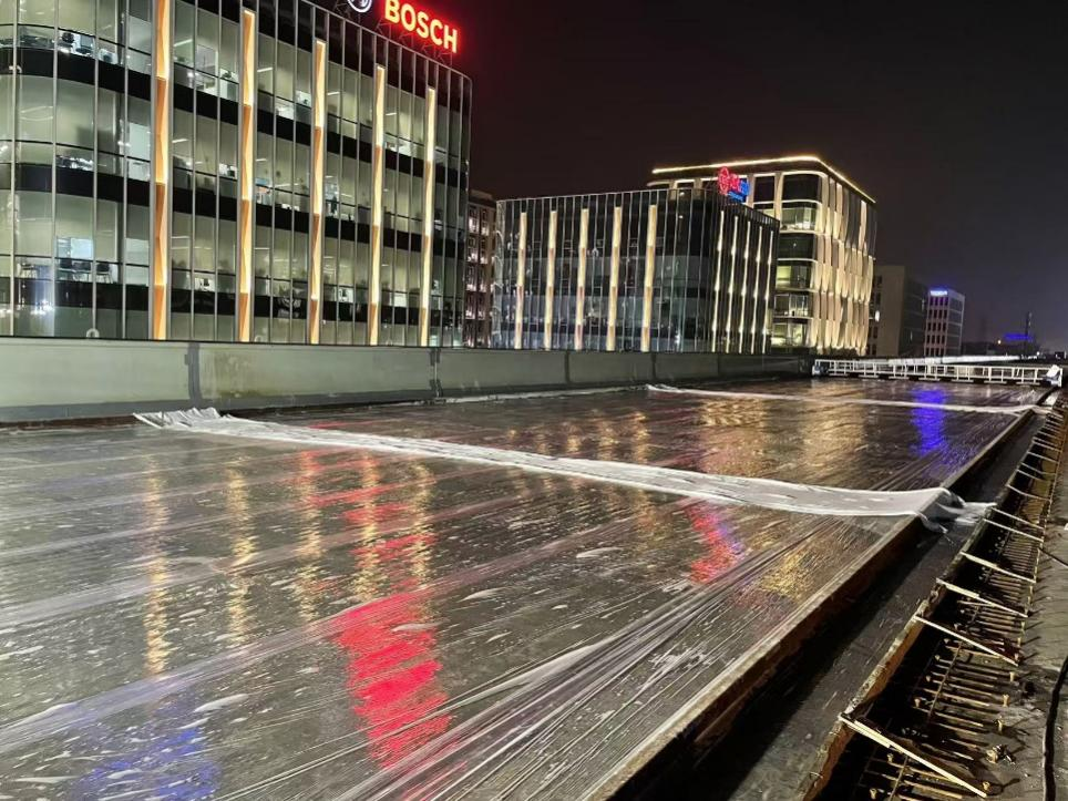 2024年11月16日晚7点,由上海浦东工程建设管理有限公司代建,上海市政工程设计研究总院(集团)有限公司设计,上海城建市政工程(集团)有限公司交通环境工程公司承建,上海瑞史坦环保科技有限公司与上海城建市政工程(集团)有限公司市政与建筑工程工业化技术研发中心(以下简称研发中心)合作承担UHPC专业施工的金海路(杨高中路~华东路东侧)改建工程2标UHPC桥面铺装北幅圆满完成,本阶段施工历时十天,分五次摊铺,完成面积4582.5㎡。