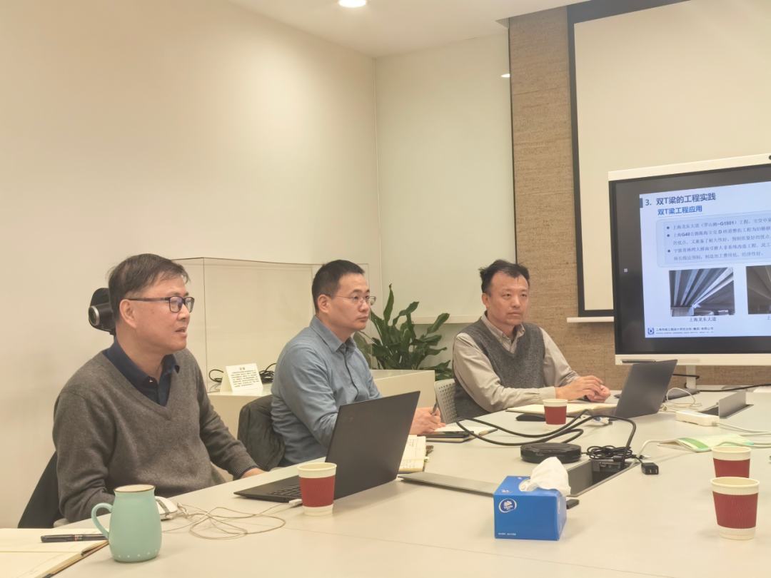 同济大学桥梁工程系刘超副教授从学术研究与工程实践结合的角度,对该梁型在实际工程中的应用提出了前瞻性建议。上海市政工程设计研究总院交规院总工程师助理李洞明就相关技术细节作了补充说明。上海城投公路投资(集团)有限公司教授级高工、原副总工程师周锡芳则围绕双T梁标准化体系建设与产业化推广分享了宝贵意见。与会各方围绕双T梁的研发攻关、智能制造、工程应用及未来发展方向展开了深入且富有建设性的研讨,共同表达了推动该先进技术在我国建设工程中规模化、高质量应用的期望。